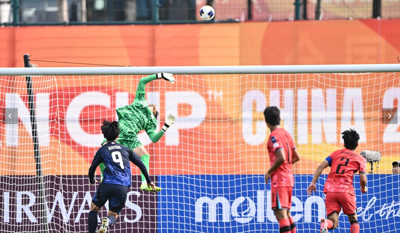 - 전반 28분 이시이 히사츠구가 왼쪽 측면에서 올린 크로스가 문전으로 향하자 골키퍼 김민수(대전)가 이를 걷어냈습니다. 그런데 하필 이 공이 문전으로 쇄도하던 일본 공격수 간다 소마의 가슴에 맞고 그대로 골대로 흘러 들어가 한국이 먼저 실점했습니다.